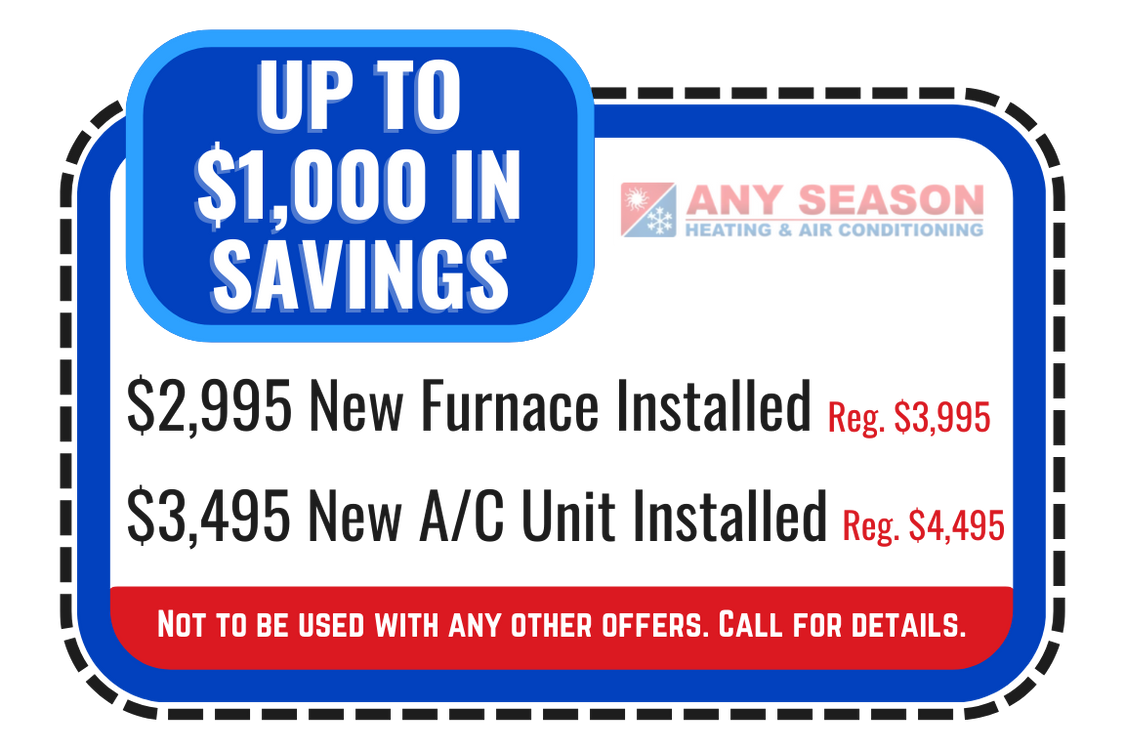 Any Season Heating & Air Conditioning is a licensed, bonded and insured HVAC contractor serving both residential and commercial customers. Whether you need a repair, maintenance or a replacement furnace or air conditioning unit, we available 24/7 for all your heating and cooling needs.